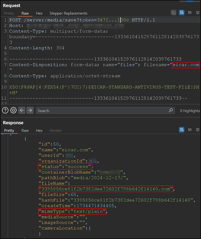 Die Anwendung bietet diverse Dateiupload-Möglichkeiten an, die nur bestimmte Dateitypen zulassen sollten. Einige dieser Upload-Funktionen prüfen jedoch nicht den Dateityp. Während des Tests war es möglich, eine .com-Datei auf den Server hochzuladen (hier gezeigt am Beispiel des Uploads von Medien/Bildern):