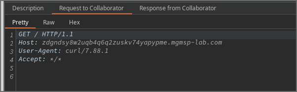 Um die Remote-Codeausführung (RCE) zu erreichen und zu überprüfen, haben wir eine Out-of-Band-Technik (OOB) verwendet. Dabei wird die Schwachstelle so ausgelöst, dass das Zielsystem zur Interaktion mit einem externen Server (z. B. über DNS oder HTTP) gezwungen wird, sodass wir die Ergebnisse unabhängig von der direkten Antwort der Anwendung beobachten können. In diesem Fall haben wir versucht, eine cURL-Anfrage an einen unserer eigenen Server auszulösen.